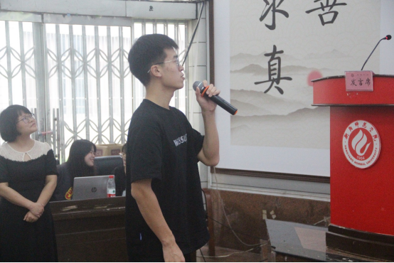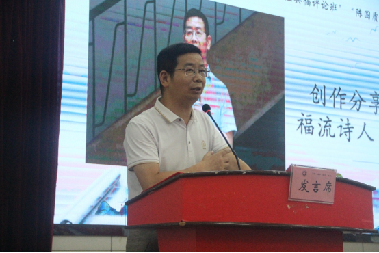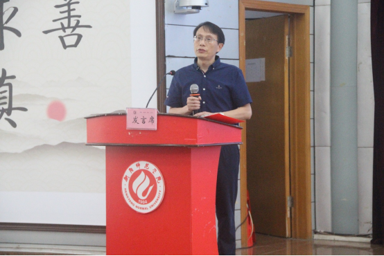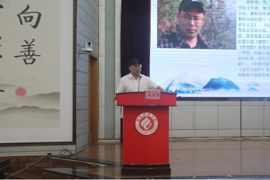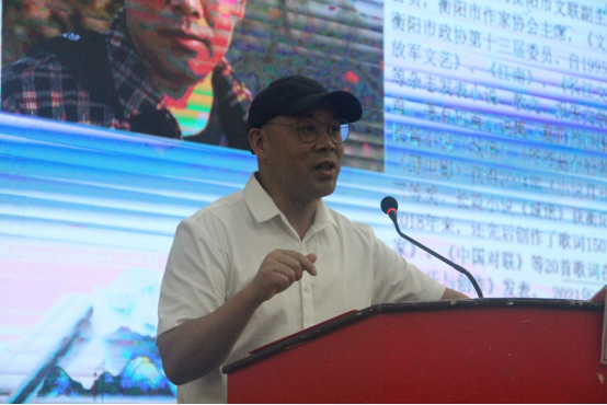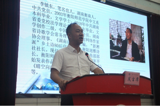 在胡主席分享他的创作经验后,杰出员工李镇东为我们分享了意味深长的三句话,第一句话是“生逢盛世,大有可为”,告诉我们文学创作应以人民为中心,应创作有营养,有内涵的作品。第二句话是“厚积薄发,百战不殆”,他结合自身经历告诉我们要学好专业知识,培养兴趣爱好,多注重知识的积累才能更好的创作。第三句话是“一起向未来”,他给我们带来第38届青春诗会主阵地落户在衡阳的好消息,以此鼓励我们坚持创作,爱上写作。
