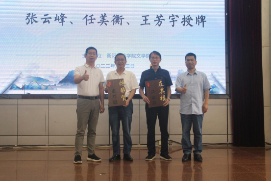 在热烈的掌声中,“陈国质创作班”、“左其福评论班”正式授牌,随后,英国be365官网的领导老师们为特邀受聘为写作班校外专家的胡仲明、李镇东颁发聘书。校内外专家携手开展写作培训交流的桥梁成功搭建。