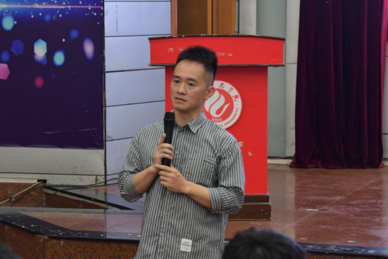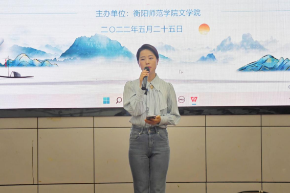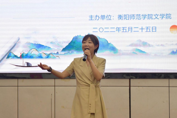 随后,衡阳市朗诵艺术协会主席廖雅琛与现场师生亲密互动,从学习、工作、生活三个方面讲述了自己与朗诵结下的不解之缘,并深情朗诵了汪国真的诗歌《热爱生命》。